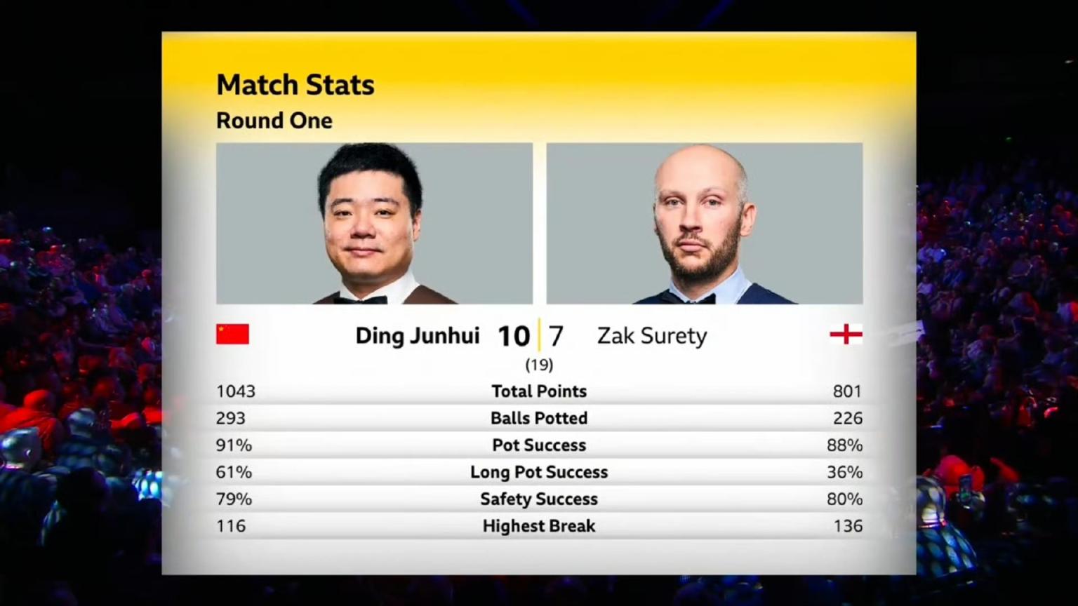 在丁俊晖这场比赛结束后,“00后”中国球员斯佳辉同样表现出色,以10比6的比分战胜英格兰球员大卫·吉尔伯特,成功晋级16强。